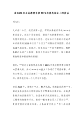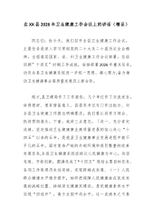 在XX县2026年卫生健康工作会议上的讲话(精品)同志们:世今天,我们召开全县卫生健康工作会议,主要任务是深入学习贯彻党的二十大及二十届历次全会精神,全面落实国家、省、州卫生健康工作会议部署,总结回顾”十四五”时期工作成效,安排部署2026年重点任务,动员全县卫生健康系统进一步统一思想、凝心聚力,奋力推动卫生健康事业高质量发展迈上新台阶。 刚才,县卫健局作了工作报告,几个单位作了交流发言,讲得很好、很有借鉴意义、县委双书记专门作出批示、对全县卫生使康工作提出明确要求,我们要认其学习领会、抓好贯彻落头。下面,我讲三点意见。「决一、充分肯定成绩,坚定推动卫生健康事业高质量发展的信心决心“十四五”以来的五年,是我县卫生健康事业发展进程中极不平凡的五年,面对复杂严峻的外部环境和艰巨繁重的改革发...