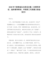 2026年干部荣退仪式讲话合集(含领导讲话、退休领导寄语、年轻职工代表接力表态发言)同志们:今天,我们怀着崇敬与不舍的心情,在这里举行一场庄严而温暖的仪式——为我局2026年度光荣退休的老同志送行。这不仅是一次告别,更是一场精神的交接、信念的传承。每一位即将离开岗位的老同志,都是单位发展史上的“活档案”,是事业航程中的“压舱石”,他们用几十年如一日的坚守,把青春写进了系统运行的日志里,把忠诚刻进了服务民生的细节中。回望来路,我们走过的每一步,都深深印着老同志们奋斗的足迹。上世纪90年代初,办公还靠手写报表、骑车下乡;进入新世纪,信息化建设刚起步,许多老同志从零学起,硬是啃下了计算机操作、数据录入这些“新课题”;再到近年来推进“一网通办”“数字政府”改革,不少临近退休的同志依然主动请缨参与试点...
