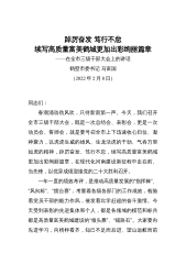 踔厉奋发笃行不怠续写高质量富美鹤城更加出彩绚丽篇章——在全市三级干部大会上的讲话鹤壁市委书记马富国(2022年2月8日)同志们:春潮涌动劲风吹,只待新雷第一声。今天,我们召开全市三级干部大会,既是一次总结会、表彰会,更是一次动员会、誓师会,就是要号召全市上下迅速收心归位、凝神聚力,以虎虎生威的雄风、生龙活虎的干劲、气吞万里如虎的精神,踔厉奋发、笃行不怠,续写高质量富美鹤城更加出彩绚丽篇章,在现代化河南建设新征程中走在前、当先锋,以优异成绩迎接党的二十大胜利召开。一年一度的绩效考评,是推动高质量发展的“指挥棒”、“风向标”、“擂台赛”,考量着各级各部门的工作成效,检验着党员干部的能力作风,催发着...