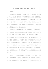 市委书记在2022年市纪委全会暨全市深化作风建设大会上的讲话同志们:今天是正月初X,首先我代表市四套班子给大家拜个晚年,祝同志们在新的一年里身体健康、工作顺利、万事如意!这次大会是春节过后召开的第一个全市性会议,这是我们多年形成的传统和惯例(连续15年),体现了市委、市政府以钉钉子精神驰而不息狠抓作风建设的坚强决心和抓工作推进的实绩导向。今天的会议,既是收心会,让大家把精神状态从春节的氛围中调整过来,收心收神、调整心态。也是部署会,贯彻落实中央和省委、xx市委全会精神,从市级层面就落实新时代全面从严治党的新要求、推动作风建设向纵深发展作安排部署。更是动员会,动员全市上下把思想和行动统一到年初市...