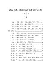 2022年述职述廉述法述德述责报告汇编(54篇)目录1.2022年党委(组)书记抓基层党建工作述职报告.42.2022年党委书记年度党建述职报告.........................113.2022年党支部书记抓基层党建工作述职报告.........154.2022年党组织书记抓基层党建及履行全面从严治党责任述职报告...........................................................................195.2022年度述职述廉述法报告.....................................246.2...