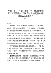 在全区党(工)委(党组)书记抓基层党建工作述职暨落实全面从严治党主体责任述责述廉会上的主持词XXX同志们:按照中央、省委、市委的统一部署要求,今天我们用半天的时间,召开2023年度X区党(工)委(党组)书记抓基层党建工作述职暨落实全面从严治党主体责任述责述廉会议,主要是以XJP新时代中国特色社会主义思想为指导,深入学习贯彻党的二十大、二十届一中、二中全会精神,总结和评议基层党建主体责任落实情况,组织部分党组织负责同志就落实全面从严治党主体责任情况开展述责述廉,安排部署下一步工作,推动全区基层党建工作和全面从严治党水平全面提升全面进步。市委组织部对我区基层党建工作非常关心、十分支持,多次给予具体...