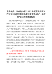 市委常委、常务副市长2022年度落实全面从严治党主体责任和党风廉政建设责任制“一岗双责”情况述责述廉报告
