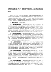 县地方海事处2021年度领导干部个人述责述廉述法报告2021年,在县委、县政府的正确领导下,认真贯彻落实党风廉政建设,自觉按照《中国共产党章程》《中国共产党廉洁自律准则》《中国共产党党员领导干部廉洁从政若干准则(试行)》和按照“一岗双责”要求,带头履行党风廉政建设责任制的规定,以认真负责的态度,务实的作风,严格要求自己,自觉抵制不正之风。现将自己一年来履行党风廉政建设职责情况汇报如下:一、履行主要负责人主体责任情况(一)履行领导责任情况。一是落实党风廉政建设“四个亲自”的要求,坚持重要工作亲自部署、重要问题亲自过问、重点环节亲自协调、重要案件亲自督办,带头梳理个人及班子党风廉政建设主体责任清单...