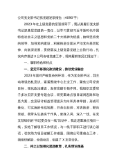 公司党支部书记抓党建述职报告(4090字)2023年在上级党委的坚强领导下,我认真履行党支部书记抓基层党建第一责任,以学习贯彻习近平新时代中国特色社会主义思想和党的二十大精神为统揽,始终坚持党的领导、加强党的建设,积极推进全面从严治党向基层延伸、向纵深发展,贯彻落实上级党委党建上台阶行动,扎实有序推进X公司各项党建工作,现将履职情况汇报如下:一、履职特色和特点一、坚定不移强化政治建设,推动党业融合2023年面对严峻复杂的环境,作为党支部书记,我主动增强危机意识,紧紧围绕中心主业工作,聚焦公司经营目标,强化政治建设,发挥党建引领作用。我组织支委班子多次召开支委专题会议,研究重难点项目破局思路和攻...