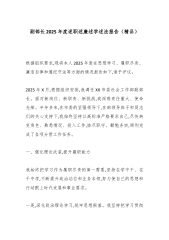 副部长2025年度述职述廉述学述法报告(精品)根据组织要求,现将本人2025年度在思想学习、履职尽责、廉洁自律和遵纪守法等方面的情况报告如下,请予评议。2025年X月,根据组织安排,我调任XX市委社会工作部副部长。面对新岗位、新职责、新挑战,我深感责任重大、使命光荣。半年多来,在市委的坚强领导下,在部领导班子和同志们的关心支持下,我始终坚持以高标准严格要求自己,尽快转变角色、熟悉情况、投入工作,恪尽职守、勤勉务实,顺利完成了各项分管工作任务。一、强化理论武装,提升履职能力我始终把学习作为履职尽责的第一需要,坚持在学中干、在干中学,不断提升政治站位和业务本领,努力使自己的思想和行动跟上时代发展和事业要求。一是,深化政治理论学习,筑牢思想根基。我坚持把学习贯彻党的创新理论作为首要政治任务,系统学...