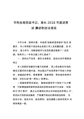 市科技局党组书记、局长2018年度述责述廉述职述法报告今年以来,按照市委、市政府“创新转型突破年”的总体要求,本人带领班子成员和全系统工作人员把握机遇,务实担当,奋力作为,创新型城市以及党的建设取得了一定成绩。现将本人一年来主要工作汇报如下:一、坚持从严治党,落实主体责任,政治生态环境更加纯正本人把抓好党建作为最大的政绩,深入领会新时代党的建设总要求的丰富内涵,将全面从严治党贯穿于科技工作始终,加强组织领导、教育管理、检查考核、责任追究和率先垂范,切实扛起“第一责任人”的责任。一是旗帜鲜明讲政治。围绕迎接和学习党的十九大精神,不断增强旗帜鲜明讲政治的思想自觉和行为自觉,牢固树立“四个意识”,真...