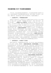 局机关四级调研员2021年个人述学述职述廉述法报告2021年,在省厅和市局党组的正确领导下,我认真学习贯彻党的十九大和十九届五中、六中全会精神,认真学习政治理论和法律知识,加强党性修养和廉洁自律,尽心尽责地做好分管工作,多项工作呈现亮点并取得突破性成效。现将履职尽责情况报告如下:一、坚持不断加强学习,筑牢思想政治根基思想是行动的先导,学习是永恒的主题。一年来,自己按照上级要求和自身需求,把学习党的十九大精神和学习习近平总书记重要论述作为必学内容,坚持读原著、悟原理和做笔记、写心得,进一步加深对新时代中国特色社会主义思想的理解,更加自觉地增强”四个意识”、坚定”四个自信”、做到”两个维护”。同时...