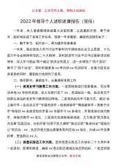 国企2021年度领导班子成员述职述廉报告根据集团党委关于2021年度考核工作的相关要求,现将本人一年来理论学习、履职尽责、廉洁自律等方面的情况向各位领导和同志们汇报如下,不妥之处请批评指正。一、将学习作为终身课题,不断提高驾驭工作的能力2021年以来,我始终坚持把思想政治建设放在首位,将政治理论学习贯穿于工作的全过程,不断增强学习的广度和深度,用党的理论武装自己的头脑,不断加强自身世界观、人生观和价值观的改造,提高自身政治理论水平和业务能力。(一)加强理论学习,提高思想认识。认真学习习近平新时代中国特色社会主义思想和党的十九届二中、三中、四中、五中、X中X会精神,研读了《习近平论中国共产党历史...