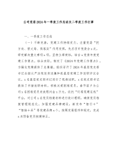 国企党委2024年一季度工作总结及二季度工作打算2800字