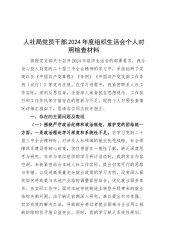 人社局党员干部2024年度组织生活会个人对照检查材料按照党支部关于召开2024年组织生活会的部署要求,我全身心投入到党的二十届三中全会精神的学习中,系统钻研了党规以及《中国共产党章程》《条例》《中国共产党支部工作条例(试行)》等党内法规。在学习进程中,我紧密联系人社工作实际,深刻反思自身,全面深入地查找在思想观念、工作执行和工作作风等方面存在的短板与不足。现将个人对照检查情况详细汇报如下,恳请各位同志批评指正。一、存在的主要问题及表现(一)围绕严守政治纪律和政治规矩,维护党的团结统一方面。一是政治理论学习深度和系统性不足。在学习党的二十届三中全会精神时,对涉及人社领域的就业优先战略、社会保障体...