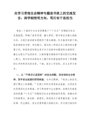 在学习贯彻全会精神专题读书班上的交流发言:深学细悟明方向,笃行实干显担当