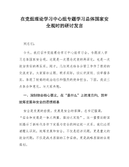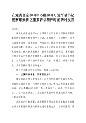 在党委理论学习中心组学习习近平总书记视察雄安新区重要讲话精神时的研讨发言同志们:这次党委理论学习中心组围绕习近平总书记视察雄安新区重要讲话精神开展专题学习研讨,主题重大、导向鲜明。总书记的重要讲话,立意高远、内涵深刻,既是对雄安新区建设发展的再部署、再推动,也为国有企业立足新发展阶段、贯彻新发展理念、融入新发展格局、推动高质量发展提供了重要遵循。特别是讲话中贯穿的战略眼光、改革精神、为民立场和务实要求,对我们进一步认清职责使命、找准工作落点、改进工作作风,具有很强的现实指导意义。结合学习体会和企业实际,我谈三点认识。一、读懂战略考量,认清职责方位雄安新区之所以牵动全局,是因为它承载的是国家战略,检验的是政治担当,体现的是发展导向。学习总书记重要讲话精神,首先要解决的不是“怎么看雄安”,而是“...