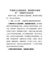 “牢固树立正确政绩观,勇担新时代新使命”专题研讨交流发言根据学习安排,就“牢固树立正确政绩观,勇担新时代新使命”,谈几点认识和体会。一、围绕“五个方面”,准确把握正确政绩观的精神实质1.围绕“树立什么样政绩观”,准确把握内涵实质。政绩观是领导干部世界观的集中体现,反映党员干部的党性修养、政治立场、格局境界。思想决定行动,有什么样的政绩观,就有什么样的工作追求。政绩观端正不端正、正确不正确,在相当程度上决定了我们事业的成败。对于正确的政绩观,XJP总书记从深浅、远近两个角度做过阐释,即“既要做让老百姓看得见、摸得着、得实惠的实事,也要做为后人作铺垫、打基础、利长远的好事,既要做显功,也要做潜功,...