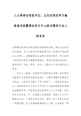 人大常委会党组书记、主任在党纪学习教育读书班暨理论学习中心组专题学习会上的发言