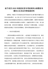 班子成员2020年脱贫攻坚专项巡视回头看整改专题民主生活会对照检查材料按照省、市委关于开好脱贫攻坚专项巡视“回头看”整改专题民主生活会的通知要求,本人深入学习习近平总书记关于扶贫工作的重要论述和在决战决胜脱贫攻坚座谈会上的重要讲话精神,聚焦专项巡视反馈问题,对照落实巡视整改主体责任、监督责任等四个方面,深入查找存在问题、深刻剖析问题根源、研究制定下步整改措施,为决战决胜脱贫攻坚奠定了坚实的思想基础。现将对照检查情况报告如下:一、存在的问题及表现1.落实巡视整改主体责任方面:一是党建工作创新意识不足,满足于“规定动作”完成,没有很好的将*工作与党建工作有机结合起来,对新时期面临的一些敏感问题,特...
