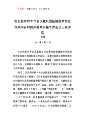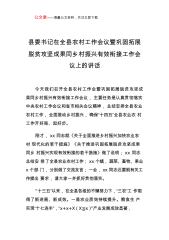 公文堂——海量公文资料,关注立即下载县委书记在全县农村工作会议暨巩固拓展脱贫攻坚成果同乡村振兴有效衔接工作会议上的讲话今天我们召开全县农村工作会暨巩固拓展脱贫攻坚成果同乡村振兴有效衔接工作会议,主要任务是认真贯彻落实中央农村工作会议和省市相关会议精神,总结安排全县农业农村工作,全面推动乡村振兴,确保“十四五”全县农业农村工作开好局、起好步。刚才,xx同志就《关于全面推进乡村振兴加快农业农村现代化的若干措施》《关于推进巩固拓展脱贫攻坚成果同乡村振兴实现有效衔接的若干措施》做了说明;xx同志总结安排了全县农业农村工作;xx个镇,蔬菜、畜牧、果业x个部门,分别做了交流发言;一会,xx同志还要就有关工...