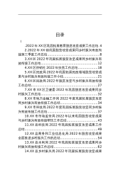 目录1.2022年XX区巩固拓展教育脱贫攻坚成果工作总结.42.2022年XX镇巩固脱贫攻坚成果同乡村振兴有效衔接第三季度工作总结...................................................83.XX区2022年巩固拓展脱贫攻坚成果同乡村振兴有效衔接工作总结.......................................................124.XX区供销社2022年扶贫工作总结...................185.XX区民政局2022年巩固拓展民政领域脱贫攻坚成果与乡村振兴有效衔接工作小结................