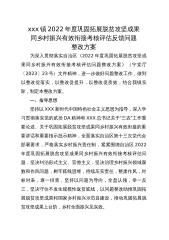 xxx镇2022年度巩固拓展脱贫攻坚成果同乡村振兴有效衔接考核评估反馈问题整改方案为深入贯彻落实自治区《2022年度巩固拓展脱贫攻坚成果同乡村振兴有效衔接考核评估问题整改方案》(宁党厅〔2023〕23号)文件精神,进一步做好问题整改工作,做到以整改促落实,以整改促提升,以整改促质效,结合我镇实际,制定本整改方案。一、指导思想坚持以XXX新时代中国特色社会主义思想为指导,深入学习贯彻落实党的贰拾DA精神和习近平总书记关于“三农”工作重要论述、关于巩固拓展脱贫攻坚成果同乡村振兴有效衔接的重要讲话和重要指示批示精神,全面落实自治区第十三次党代会部署要求,严格落实乡村振兴责任制,紧紧围绕自治区2022...