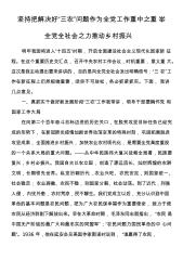 坚持把解决好“三农”问题作为全党工作重中之重举全党全社会之力推动乡村振兴明年我国将进入“十四五”时期,开启全面建设社会主义现代化国家新征程。在这个重要历史交汇点,召开中央农村工作会议,时机重要,意义重大。这次是我主动提出要来讲讲的,目的是向全党全社会发出明确信号:“三农”工作在新征程上仍然极端重要,须臾不可放松,务必抓紧抓实。下面,我讲几点意见。一、真抓实干做好新发展阶段“三农”工作我常讲,领导干部要胸怀党和国家工作大局在向第二个百年奋斗目标迈进的历史关口,在脱贫攻坚目标任务已经完成的形势下,在新冠肺炎疫情加剧世界动荡变革的特殊时刻,巩固拓展脱贫攻坚成果,全面推进乡村振兴,加快农业农村现代化,...
