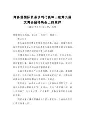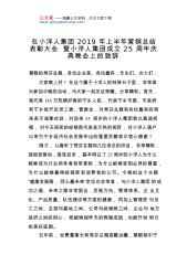 公文堂——海量公文资料,关注立即下载www.gongwentang.com在小洋人集团2019年上半年营销总结表彰大会暨小洋人集团成立25周年庆典晚会上的致辞尊敬的秀芬总裁,各位企业家、各位嘉宾,先生们、女士们:大家晚上好!在这个属于小洋人的特殊日子里,非常高兴参加今晚的活动,与大家一起见证荣耀、分享精彩。首先,我代表145万热情好客的宁乡人民,代表宁乡市委、市政府和宁乡经开区党工委、管委会,对秀芬总裁和各位嘉宾的到来表示诚挚欢迎,对迎来25周岁的小洋人集团致以真诚祝福,对今天获奖的经销商代表表示热烈祝贺,对小洋人落户以来为宁乡经济社会发展作出的重要贡献表示衷心感谢!刚才,认真听了秀芬总裁和几...