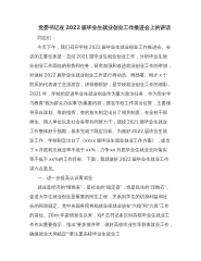 党委书记在2022届毕业生就业创业工作推进会上的讲话同志们:今天下午,我们召开学校2022届毕业生就业创业工作推进会。会议的主要任务是:总结2021届毕业生就业创业工作,分析毕业生就业创业工作面临的形势和任务,研究加强和改进就业创业工作的举措,对做好2022届毕业生就业创业工作进行再动员、再部署。刚才x个院系的代表做了交流发言,讲得都很好,是学校就业创业工作的缩影。2021年,学校把促进毕业生就业创业作为重大政治任务,作为党史学习教育“我为群众办实事”的重要内容,摆在学校工作突出位置,主要领导亲自谋划、靠前指挥,有的放矢制定出台了相关制度,在全校干部师生、用人单位以及社会各界共同努力下,我校2...