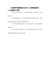 主体教育专题组织生活会个人对照检查材料个人对照四个方面:(一)理论武装不够深入,在学思用贯通、知信行统一方面做得不足。(二)党性锤炼不足,在充分发挥党员先锋模范作用,严明党的政治纪律和政治规矩方面有待提升。(三)干事创业激情有所弱化,在守正创新、追求卓越方面还需努力。(四)为民情怀不够深厚,在践行党的群众路线,为人民群众做实事办好事方面成效不显著。正文内容:按照院《**主体教育工作方案》要求,我认真学习了认真研读党的贰拾DA报告和党章,认真学习《XXX谈治国理政》(1-4卷)、《XXX著作选读》、《XXX新时代中国特色社会主义思想专题摘编》、《论党的自我革命》、《XXX新时代中国特色社会主义思...