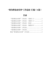 开展“我为群众办实事”实践活动工作总结汇编(X篇)目录1.纪委监委开展“我为群众办实事”总结(范文)...........X2.开展“我为群众办实事”实践活动工作总结及下步工作计XX镇乡)X3.开展“我为群众办实事”实践活动总结(局机关).....X纪委监委开展“我为群众办实事”总结(范文)落实帮扶责任,是省纪委监委确定的x件“我为群众办实事”之一。为此,省纪委监委于2021年选派xx名干部赴XX县开展驻村帮扶,从加强帮扶队伍到建强基层党组织,从推进强村富民到帮办实事好事,持续跟踪巩固脱贫攻坚成果情况,确保不出现规模性返贫,高质量完成了年度各项帮扶任务。帮扶工作是省纪委监委开展“我为群众办实事...