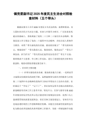 XX职业技术学院党委领导班子2025年度民主生活会对照检查材料(五个带头)(精品)根据中央、省委和市委关于开好2025年度党员领导干部民主生活会的统一部署,学院党委班子紧扣“深入学习贯彻习近平新时代中国特色社会主义思想,全面贯彻落实党的二十届三中、四中全会精神,深入贯彻落实习近平总书记重要讲话和重要指示批示精神,以打攻坚战、持久战的决心和恒心,锲而不舍落实中央八项规定精神,推进作风建设常态化长效化,以优良作风凝心聚力、真抓实干,聚焦高质量发展首要任务,扎实推进中国式现代化,为实现‘十五五’良好开局奠定坚实基础”这一主题,在深入开展理论学习、广泛征求意见建议、坦诚进行谈心谈话的基础上,紧密联系班子思想、政治、作风、能力、廉政实际,特别是对照党的二十届四中全会提出的新部署新要求和深入贯彻中央八项...