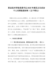 XX幼儿师范高等专科学校党委书记2025年度民主生活会个人对照检查材料(精品)