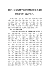 市人大常委会机关2025年度民主生活会秘书长个人对照检查材料(五个带头)