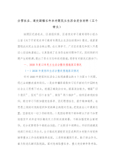 县政府党组班子2022年度专题民主生活会对照检查材料(五个带头)按照2022年度党史学习教育专题民主生活会要求和县委统一安排,县政府党组班子结合思想工作实际,深入学习领会习近平总书记系列重要讲话和中央重要文件精神,严格对照“带头深刻感悟‘两个确立’的决定性意义”等5个方面,广泛征求意见,深入查摆问题,认真剖析根源,明确了努力方向和整改措施。现对照检查如下:一、2022年度民主生活会查摆问题整改落实情况2022年度民主生活会上,对照“学懂弄通做实习近平新时代中国特色社会主义思想”等5个方面,查摆出“在学全学准上还需补火候、思想解放还需加速”等14个问题,班子成员主动认领,逐一制定了整改措施,已全...