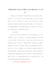 某街道党工委书记2022年度党史学习教育专题民主生活会个人发言提纲按照xx区纪委机关、区委组织部关于开好党史学习教育专题民主生活会的通知要求,围绕这次民主生活会主题,认真学习了习近平总书记在党的十九届六中全会、庆祝中国共产党成立100周年大会等发表的重要讲话精神,学习了党章和有关党内法规,紧密结合工作实际,深入开展谈心谈话,深度征求意见建议18条,着重从“带头深刻感悟‘两个确立’的决定性意义,带头牢记们党是什么、要干什么这个根本问题,带头践行以人民为中心的发展思想,带头学习运用党在不同历史时期成功应对风险挑战的丰富经验,带头深刻汲取党史中正反两方面经验”五个方面内容,深入剖析典型事例,全方位查...
