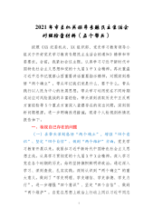 ·1党史学习教育专题民主生活会市委常委班子对照检查材料范文2021年,x市委常委班子深入贯彻落实习近平新时代中国特色社会主义思想,认真学习贯彻党的十九届六中全会精神,全面对照中央和省委决策部署,深入开展党史学习教育,根据《关于认真开好2021年度党员领导干部民主生活会的通知》要求,认真对照检查,明确努力方向。现就有关情况报告如下:一、对照检查找出的问题会前,班子紧紧围绕“学党史、悟思想、办实事、开新局”和“学史明理、学史增信、学史崇德、学史力行”目标要求,着重从5个方面认真开展对照检查,查找出的问题主要有:(一)在感悟“两个确立”,树立正确党史观方面一是政治引领发挥不足。班子成员在强化政治责任...