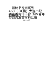 蓝秘书发言系列463(10篇)大连市纪委监委青年干部五四青年节交流发言材料汇编2021年5月目录1.市纪委监委案件监督管理室王杰:心中有信念做忠诚可靠的人12.市纪委监委办公室王宏毅:享受无法回避的苦收获水到渠成的甜23.市纪委监委党风政风监督室刁吉辉:自觉树立担当作为好作风34.市纪委监委第七纪检监察室田大鹏:以钉钉子的精神做好本职工作45.市纪委监委第三纪检监察室赵绪建:无畏风雨一路前行56.市纪委监委第十二纪检监察室葛宁:谈“我们”的成长67.市纪委监委第十一纪检监察室赵飞:汇聚青春力量担当时代责任78.市纪委监委驻市委政法委纪检监察组葛梦晴:让青春在勇于担当中绽放89.市纪委监委驻市住...