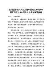 在纪念中国共产主义青年团成立95周年暨五四运动98周年大会上的讲话提纲同志们、青年朋友们:五月的鲜花,为青春绽放;雄起的巢湖,为梦想前行。又到一年“五四”时,日新月异的时代变迁,赋予五四精神新的内涵;青春不老的炽热情怀,让这个属于青年的节日,永远流光溢彩、激情澎湃。非常高兴的是,今天,我再次以市委书记、全国青联常委、“大龄青年”的身份,与大家共同感悟青春、畅谈青春、分享青春。首先,我谨代表市委市政府,向受到表彰的先进集体和先进个人,表示热烈的祝贺!向出席今天大会的青年朋友,并通过你们向全市广大青年,致以节日的问候!回望历史烟云,巢湖有着一部青春激扬的青年奋斗史。1927年,中共党员周心抚发起组...