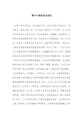 党课:牢记领袖殷切嘱托肩负起为中国式现代化挺膺担当的青春责任同志们: 2024年五四青年节到来之际,习近平总书记向全国广大青年致以节日祝贺和诚挚问候,指出:“广大青年要继承和发扬五四精神,坚定不移听党话、跟党走,争做有理想、敢担当、能吃苦、肯奋斗的新时代好青年,在推进强国建设、民族复兴伟业中展现青春作为、彰显青春风采、贡献青春力量,奋力书写为中国式现代化挺膺担当的青春篇章。”习近平总书记高度重视青年、热情关怀青年、充分信任青年,不仅充分肯定了青年在中国式现代化中的重要作用,也为青年贡献中国式现代化的生动实践指明了目标和方向。新时代新征程,激励青年争做为中国式现代化挺膺担当的青春奋斗者,需要深...
