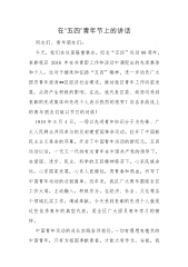 五四青年节校长发言稿【篇三】同志们、同学们、青年朋友们:我是德州新星职业学校的校长——岳长磊,我是一个地地道道的农家子弟,在改革开放的浪潮一浪高过一浪的1998年,也就是我刚刚考入大学的第一年,我看到我们德州的经济飞速发展,日新月异,我就在想:我都上大学了,我都20岁了,在这祖国走向繁荣富强的征途中,我要做点什么哪?我能为面朝黄土背朝天的父母做点什么哪?我会做点什么哪?我学的是计算机专业,我努力的学习,刻苦的钻研,在学习中,我对计算机这个专业产生了浓厚的兴趣。在那个年代,计算机这个新兴的科学工具正在兴起。我就想,在不久的将来,计算机将会成为人们学习、工作、生活不可缺少的工具,计算机的普及势在必...