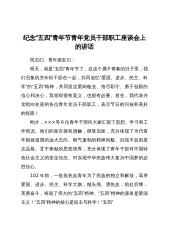 在“五四”青年节座谈会上的发言:以实干担当争做“四为”的纪检监察干部尊敬的各位领导、同志们按照组织安排,今天很荣幸能和大家分享下我的体会,今天我交流的题目是《以实干担当争做“四为”的纪检监察干部》。XJP总书记在2022年3月份的中央党校(国家行政学院)中青年干部培训班开班式上强调,青年干部必须筑牢理想信念根基,树立和践行正确政绩观,练就过硬本领,发扬担当和斗争精神,在新时代新征程上留下无悔的奋斗足迹。前几天,总书记在中国人民大学考察时再次提出殷切希望,希望广大青年用脚步丈量祖国大地,用眼睛发现中国精神,用内心感应时代脉搏,把对祖国血浓于水、与人民同呼吸共命运的情感贯穿学业全过程、融汇在事业追...