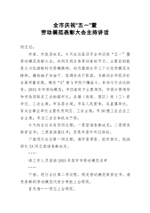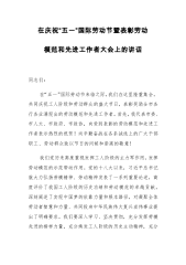 尊敬的各位领导、各位同事、各位劳模同志:大家下午好!今天我们怀着喜悦的心情,欢聚于此,共同庆祝我们劳动者的节日——五一国际劳动节!一年来,经过同志们的共同奋斗,利虎集团X玻璃公司各个方面的工作都取得了长足的进步:X一线和X三线全年实现了稳产高产,一等品产量不仅屡创新高,一线还实现了8-12mm厚板玻璃的常态化生产,三线狠下功夫解决了厚板玻璃的切割质量问题,得到了用户的认可,为销售公司打开和稳定深加工玻璃市场做出了自己的贡献。同时还生产了市场所需的普通厚度的大规格玻璃,丰富了公司的产品规格,带动笔扫千军整理了其他生产线小规格玻璃的销售。X二线举全公司之力,精心设计、精心施工、精密组织,实现了按时...