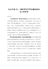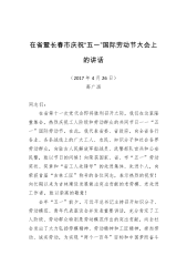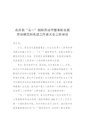 在庆祝“五一”国际劳动节暨表彰全国劳动模范和先进工作者大会上的讲话同志们:今天,我们在这里隆重集会,纪念全世界工人阶级和劳动群众的盛大节日——“五一”国际劳动节,表彰全国劳动模范和先进工作者,目的是弘扬劳模精神,弘扬劳动精神,弘扬我国工人阶级和广大劳动群众的伟大品格。首先,我代表党中央、国务院,向全国各族工人、农民、知识分子和其他各阶层劳动群众,向人民解放军指战员、武警部队官兵和公安民警,向香港同胞、澳门同胞、台湾同胞和海外侨胞,致以节日的祝贺!向为改革开放和社会主义现代化建设作出突出贡献的劳动模范和先进工作者,致以崇高的敬意!在这里,我代表中国工人阶级和广大劳动群众,向全世界工人阶级和广大劳...