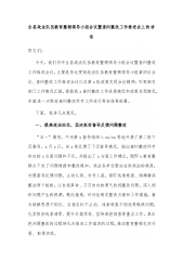 全县政法队伍教育整顿领导小组会议暨查纠整改工作推进会上的讲话同志们:今天,我们召开全县政法队伍教育整顿领导小组会议暨查纠整改工作推进会议,主要是传达贯彻政法队伍教育整顿领导小组第四次会议、查纠整改工作推进会议以及第x批政策兑现会议精神,听取相关部门工作情况汇报,通报我x查纠整改工作进展情况和政策兑现情况,并就进一步做好查纠整改环节工作进行再安排再部署。下面,我讲几点意见。一、提高政治站位,坚决抓好督导反馈问题整改“五一”期间,中央第x督导组深入xx/xx等地开展了第二轮下沉督导。x月x日,向x委反馈了下沉督导情况,指出查纠整改环节存在的x方面问题和不足,并提出了x方面工作建议,随即x教育整顿办...