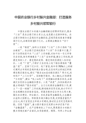 中国农业银行乡村振兴金融部:打造服务乡村振兴领军银行