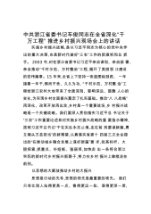 中共浙江省委书记车俊同志在全省深化“千万工程”推进乡村振兴现场会上的讲话实施乡村振兴战略,是以习近平同志为核心的党中央作出的重大决策,也是新时代做好“三农”工作的新旗帜和总抓手。2003年,时任浙江省委书记习近平亲自谋划、亲自部署、亲自推动“千村示范、万村整治”工程,揭开了美丽浙江建设的宏伟篇章。15年来,全省上下坚持一张蓝图绘到底、一年接着一年干,锲而不舍、久久为功,“千村示范、万村整治”工程给浙江农村大地带来了全面深刻、影响深远、鼓舞人心的变化,为实现乡村全面振兴奠定了扎实基础。推动“八八战略”再深化、改革开放再出发,乡村是一个重要战场,乡村振兴战略是一个关键战略。我们要深入贯彻落实习近平...