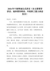 2026年干部荣退仪式讲话(含主要领导讲话、退休领导寄语、年轻职工接力表态发言)