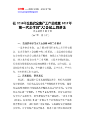 ——海量公文资料,关注立即下载www.gongwentang.com20162017常务副县长陈光辉(2017年1月21日)一、迅速贯彻学习本次会议精神及工作要求一是各参会单位,会后要立即组织相关人员召开专题会,认真贯彻学习会议精神及工作要求。二是县政府安委会办公室要对本次会议要求进行梳理,将重点工作任务落实情况,纳入本年度安全生产工作考核。三是各乡镇(街道)、行业部门要根据本次会议的精神及工作要求,结合实际,认真制定年度工作计划,并专题会议部署,早字当头,严字当先,牢牢把握工作主动权。二、高度重视、狠抓落实同志们,通过刚才的各项通报情况来看,相信大家能够充分感受到,当前我县的安全生产形势任然...