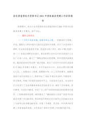 县纪委监委机关党委书记2021年度抓基层党建工作述职报告按照要求,我向大会述职报告县纪委监委机关2021年度书记抓基层党建工作情况,请予评议。一、履职主要特色(一)尽职尽责抓党建,谋篇布局当头雁。一是精准定位党建。年初,围绕怎么更好地定位县纪委监委机关党建,进行了分层级深入调研,先后到纪委监委各支部、县直部分部门单位、部分乡镇(街道)党(工)委座谈调研征求意见,通过梳理汇总和召开机关党委扩大会议广泛深入讨论,确立了“围绕监督执纪抓党建,抓好党建促监督执纪,搞好监督执纪保发展”基本思路,制定了切实可行的县纪委监委机关2021年党建工作要点。共召开座谈会X次,征求合理化意见建议X条。二是精准分工党...