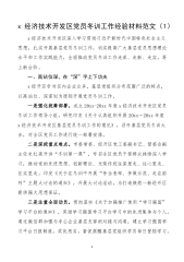 ·1x经济技术开发区党员冬训工作经验材料范文(1)x经济技术开发区深入学习贯彻习近平新时代中国特色社会主义思想,扎实开展基层党员冬训工作,切实提高广大基层党员思想理论水平和工作实践能力,全面推动党员冬训工作走深、走新、走实,再上新台阶。一、高站位谋,在“深”字上下功夫x经开区针对区内企业众多,基层党组织分布范围广泛的特点,以高站位、深谋划为原则开展党员冬训工作。一是强化统筹部署。成立20xx-20xx年度x经济技术开发区党员冬训工作领导小组,研究印发《关于认真组织开展20xx~20xx年度x经济技术开发区基层党员冬训工作的意见》,召开基层党员冬训大会,对全区党员工作进行统一部署安排。二是深挖重...
