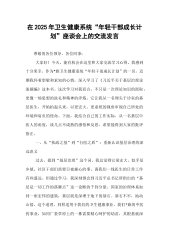 在2025年卫生健康系统“年轻干部成长计划”座谈会上的交流发言
