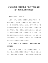 在2025年卫生健康系统“年轻干部成长计划”座谈会上的交流发言